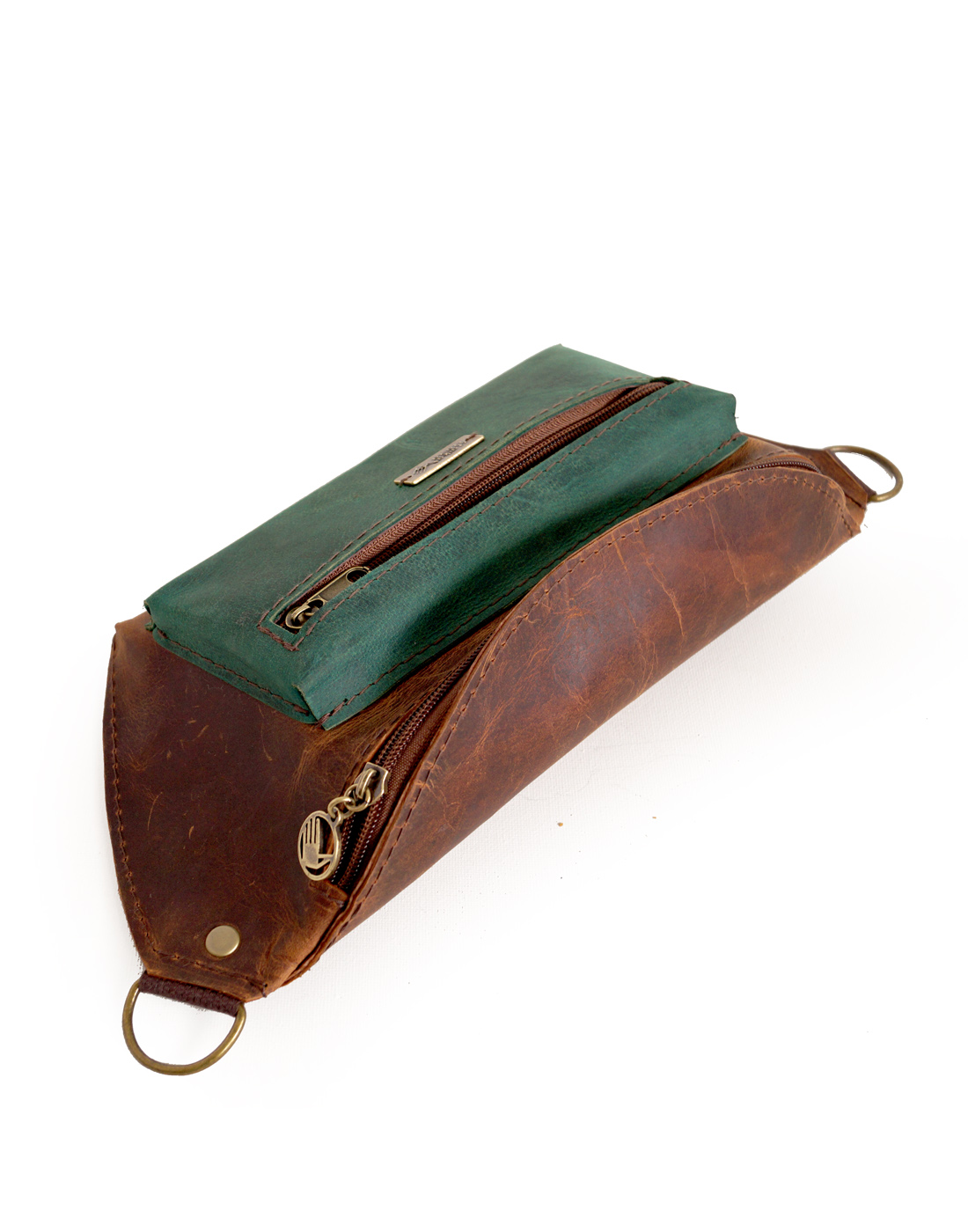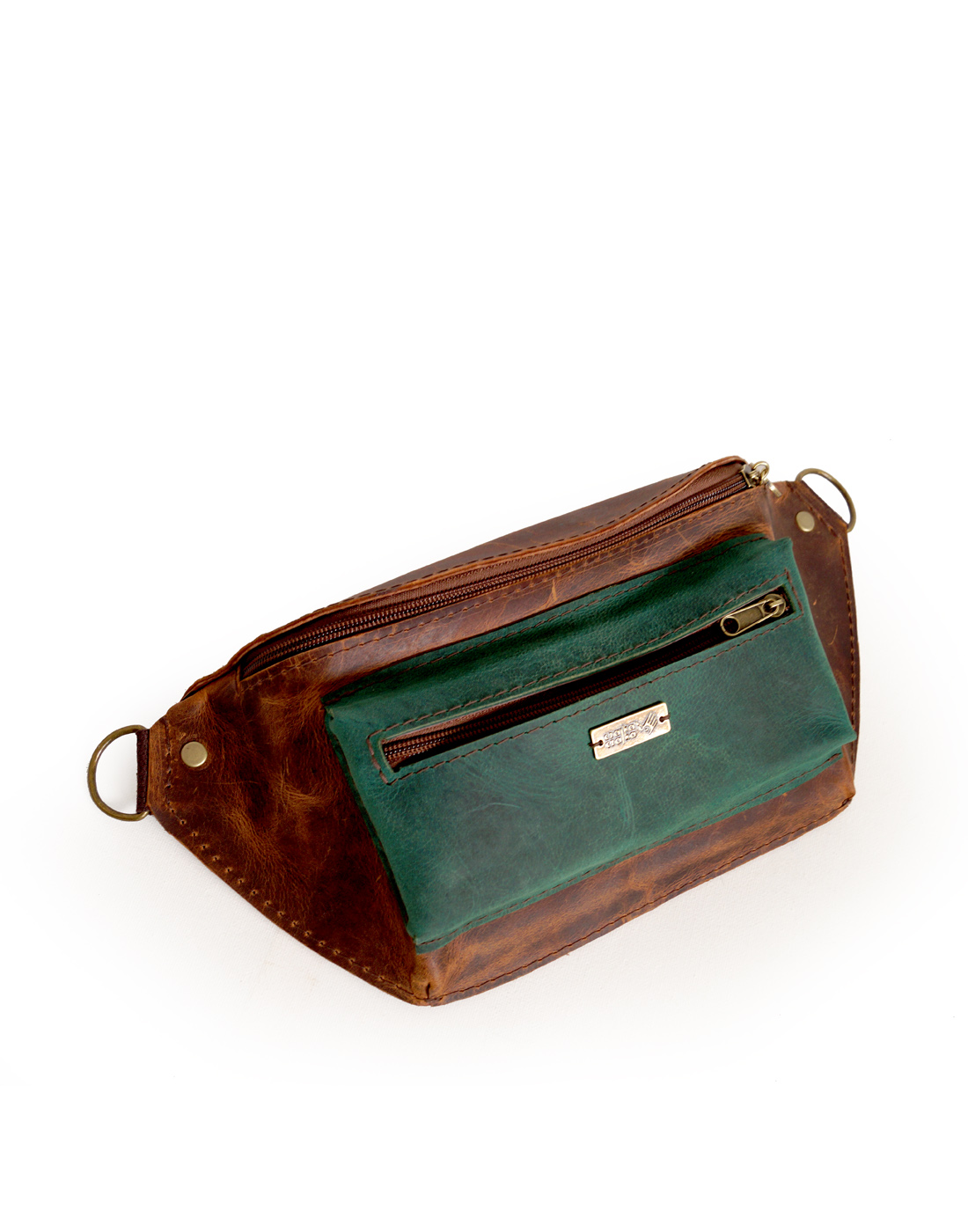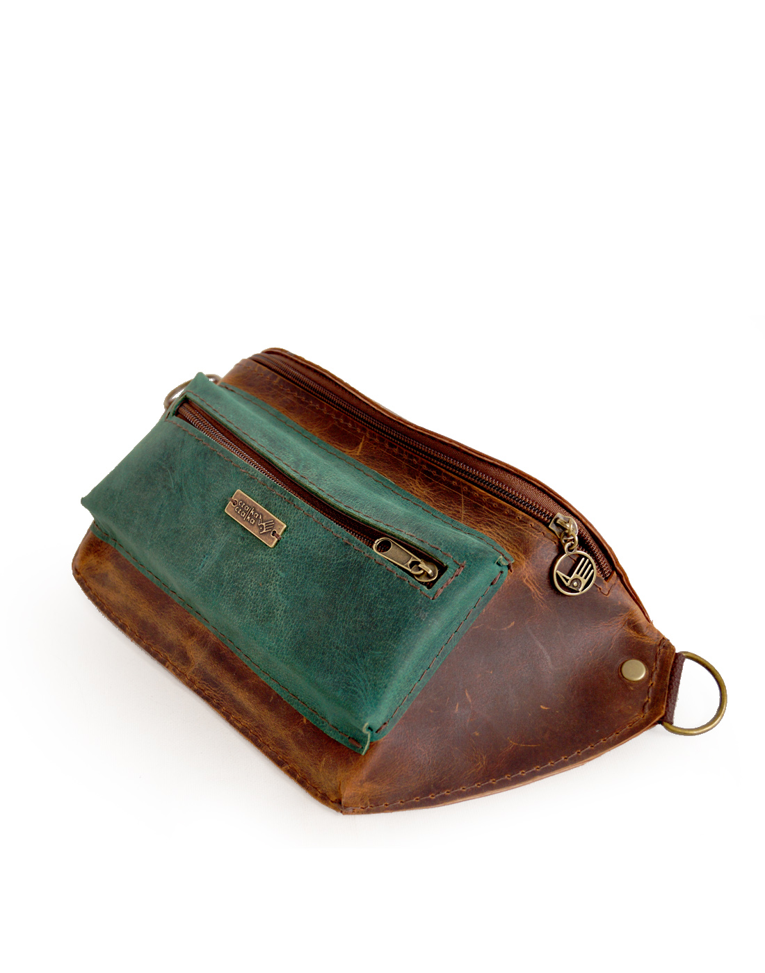Nerka o klasycznym, podłużnym kroju, uszyta ze świetnej jakości skór naturalnych, bydlęcych, typu crazy w odcieniach brązu i zieleni. Składa się z dużej, głównej komory, zamykanej zamkiem błyskawicznym, pojemnej kieszenie przedniej oraz kieszeni tylnej. Uszyta z dużą dbałością o każdy szczegół. Wymiary: wysokość – 15, szerokość – 30, głębokość – 7, dł. regulowanego paska – 66-115cm.
