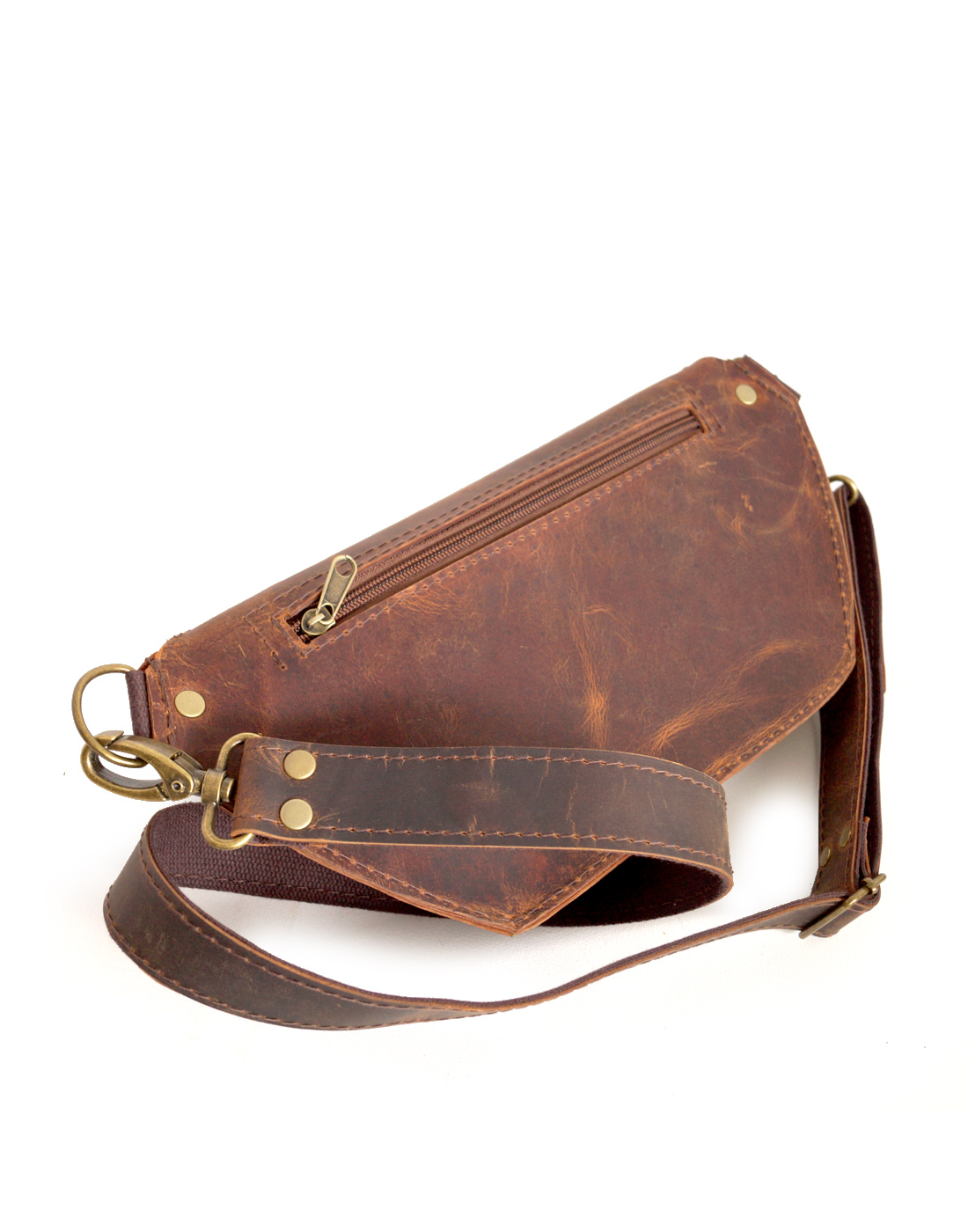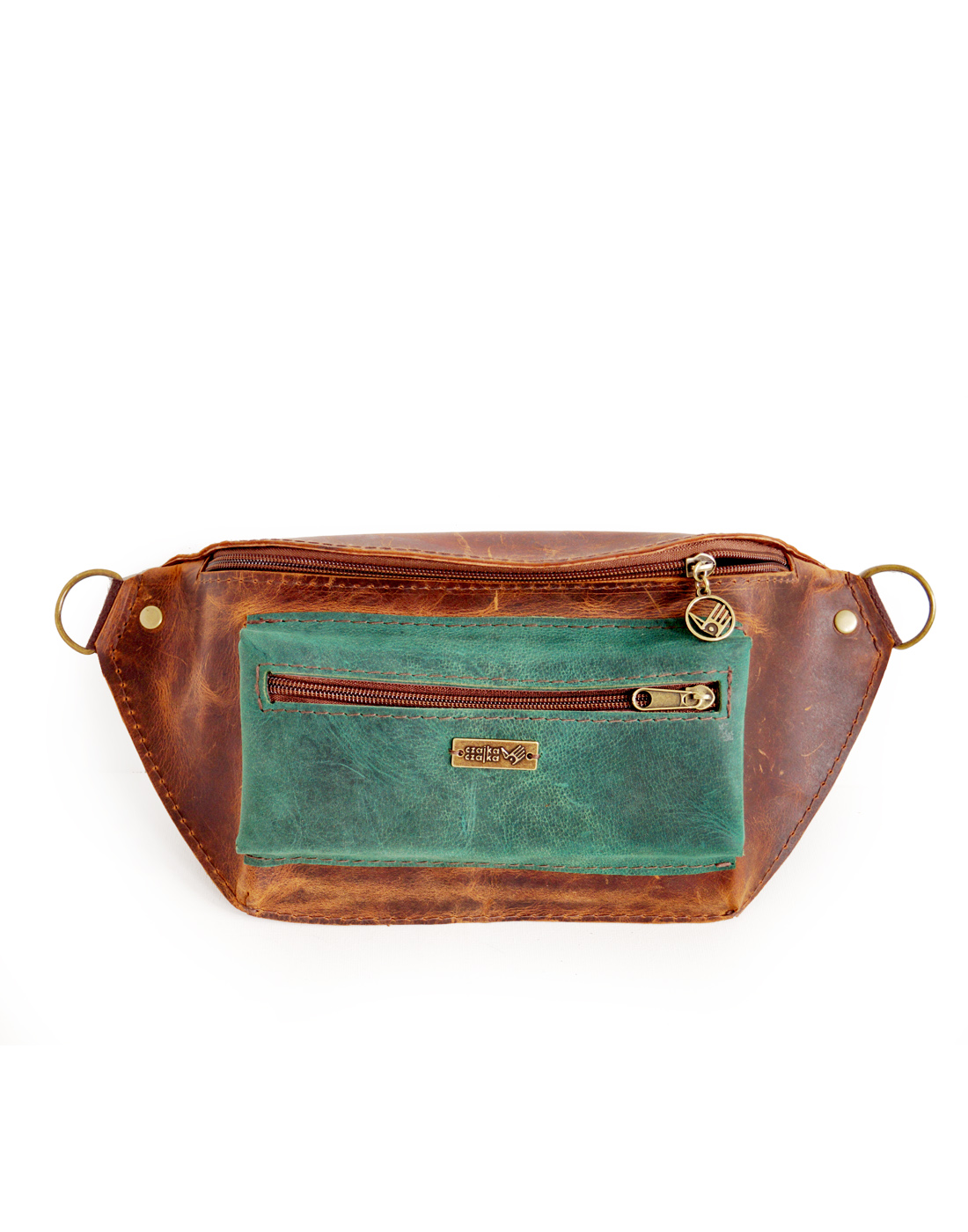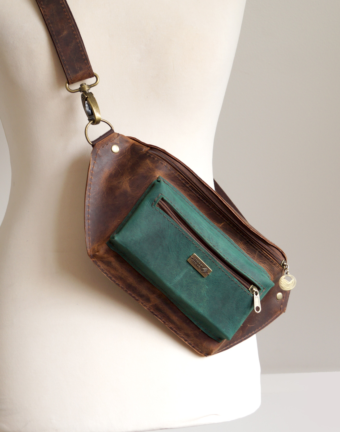 Nerka o klasycznym, podłużnym kroju, uszyta ze świetnej jakości skór naturalnych, bydlęcych, typu crazy w odcieniach brązu i zieleni. Składa się z dużej, głównej komory, zamykanej zamkiem błyskawicznym, pojemnej kieszenie przedniej oraz kieszeni tylnej. Uszyta z dużą dbałością o każdy szczegół. Wymiary: wysokość – 15, szerokość – 30, głębokość – 7, dł. regulowanego paska – 66-115cm.
