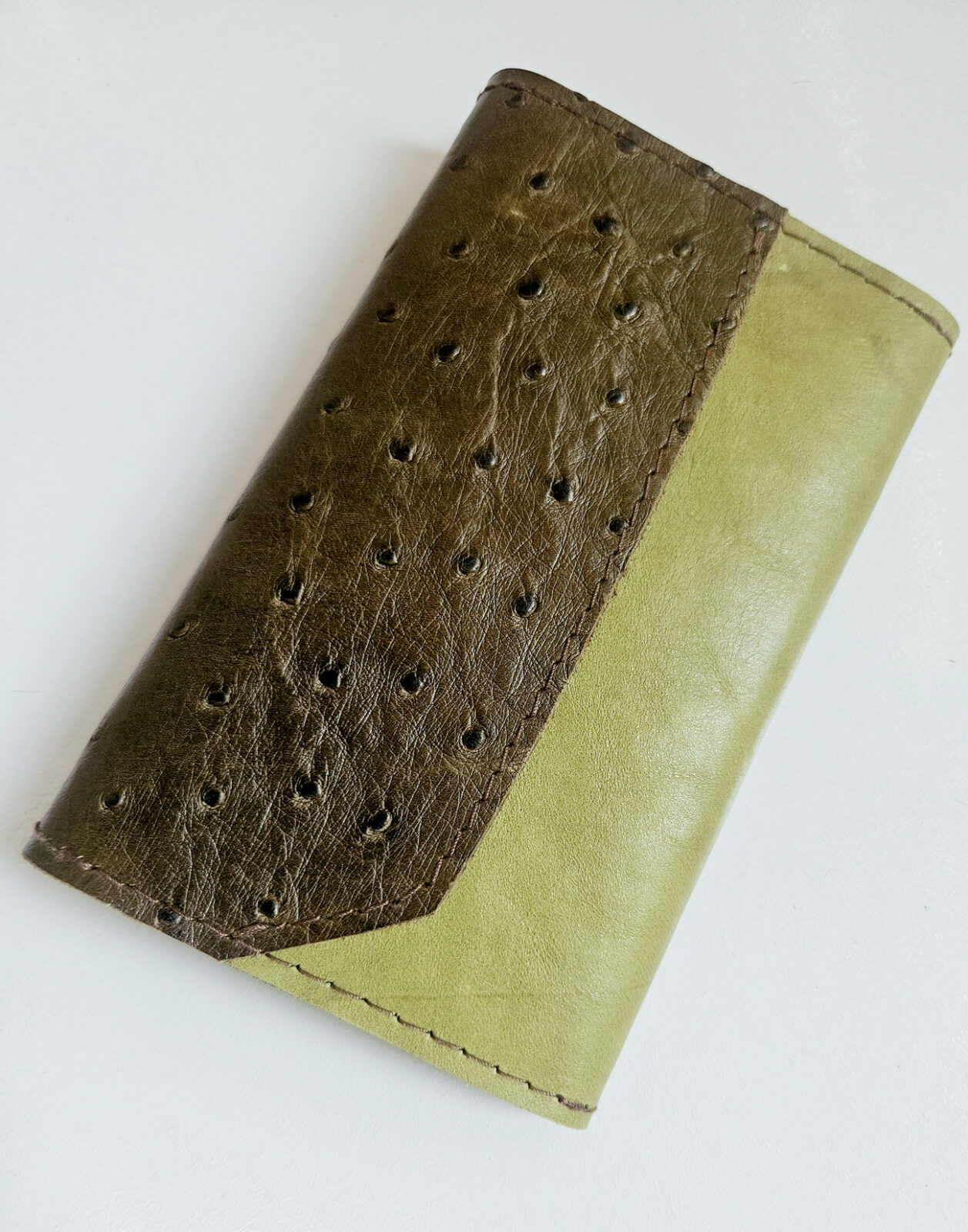 PortFELEK damski portfel skóra naturalna struś zieleń khaki OD RĘKI